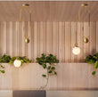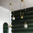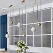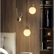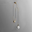 The Dumbbell Hanging Pendant Light is made with high-quality materials, including a sturdy metal frame and a frosted glass shade. The shade has a sphere shape with rounded edges, giving it a soft and elegant appearance.