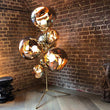 The Molten Standing Chandelier is crafted from high-quality materials, including hand-blown glass and durable metal. The glass shades are available in a variety of colors and finishes, allowing you to choose the perfect one to match your decor. The metal base is finished in a sleek and modern black, adding to the chandelier's overall sense of luxury and sophistication.